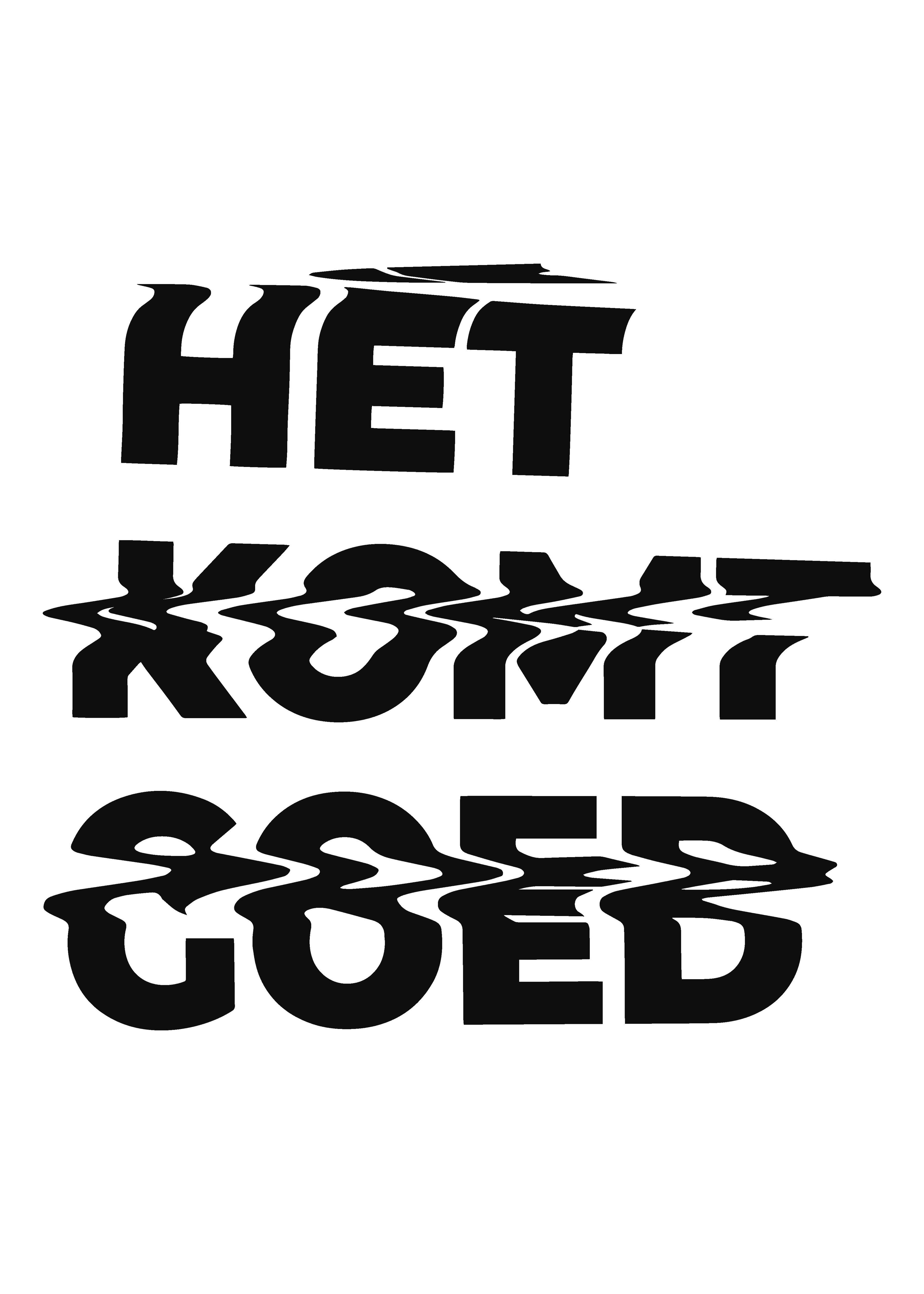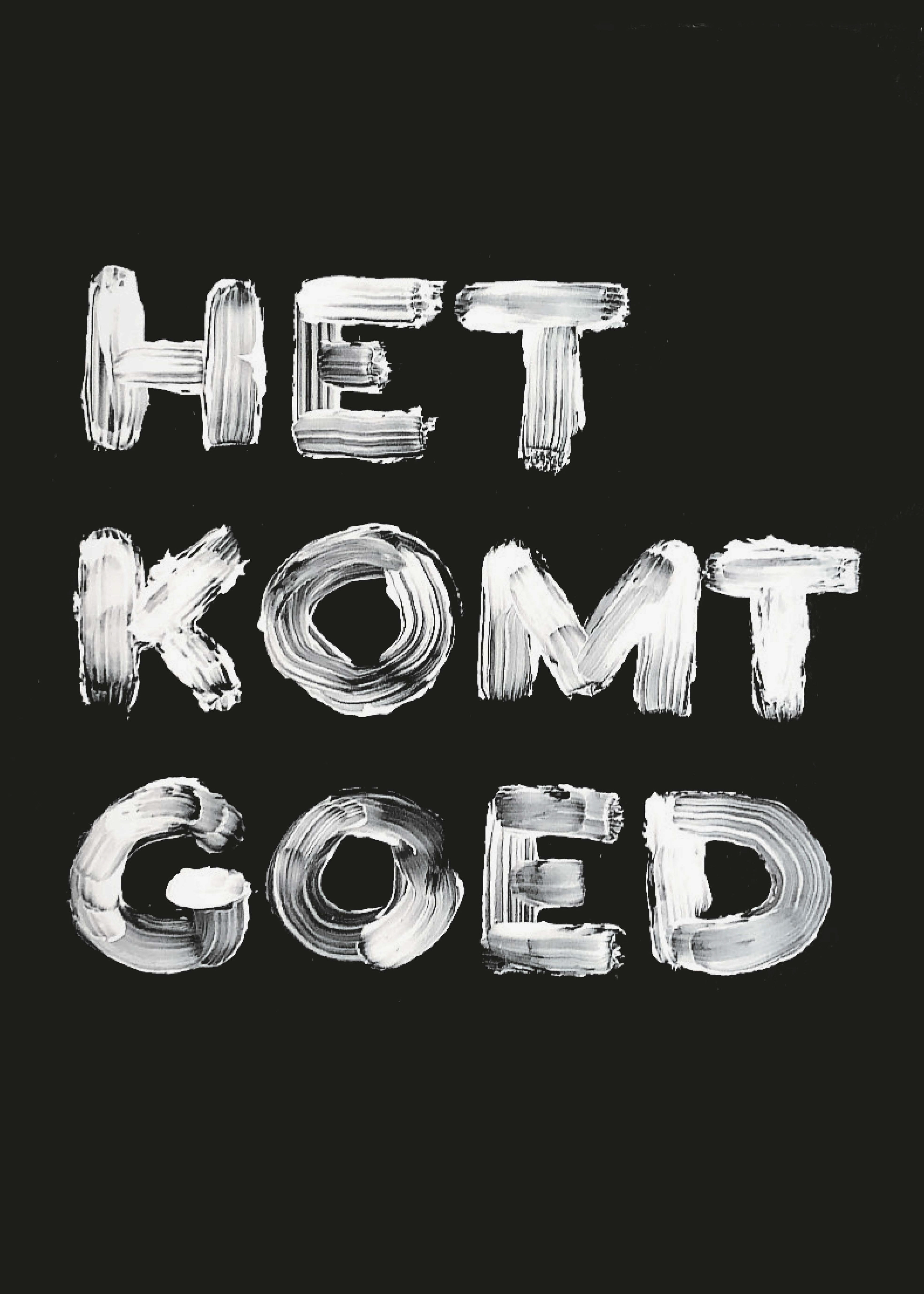 Een typografisch onderzoek met verschillende materialen met de zin: ‘het komt goed’.